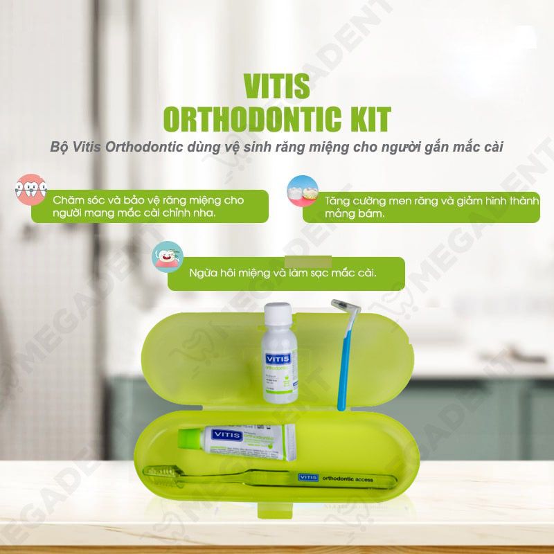 - Bộ sản phẩm VITIS Orthodontic Kit thích hợp cho người đang mang khí cụ chỉnh nha (người niềng răng mắc cài).