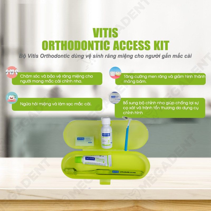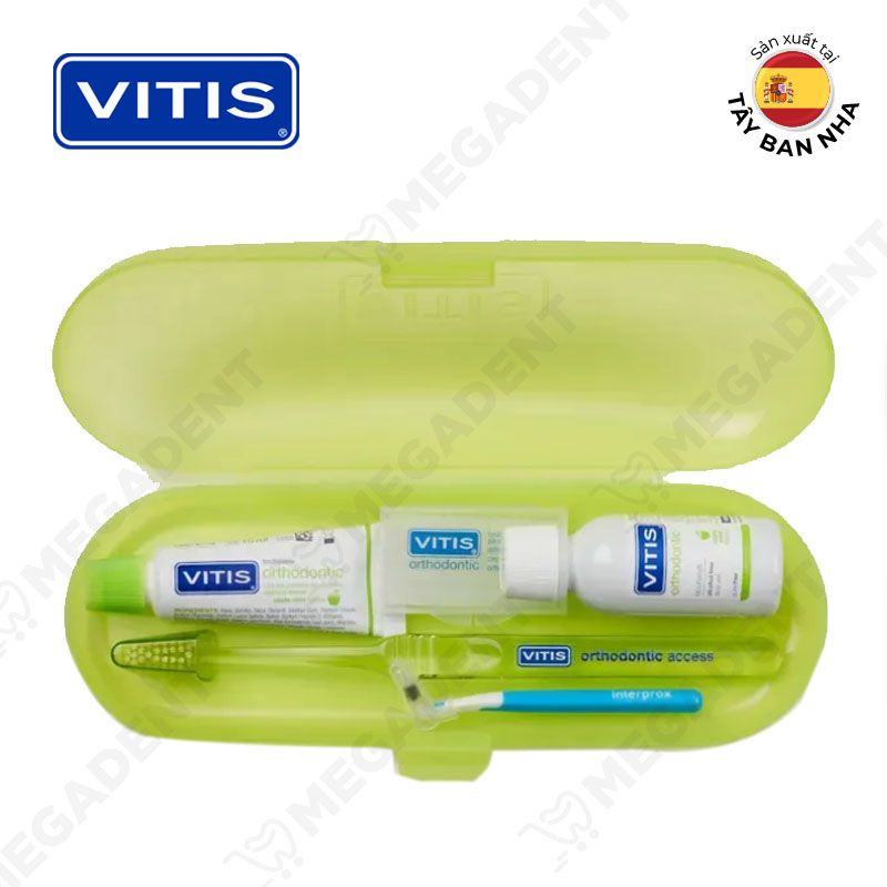 - Bộ sản phẩm VITIS Orthodontic Access Kit thích hợp cho người đang mang khí cụ chỉnh nha (người niềng răng mắc cài).