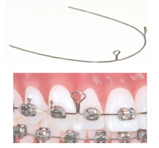 Dây cung thép đóng khoảng ( 2 Keyhole loop ) - dùng để đóng khoảng nhẹ nhàng và có độ cứng lí tưởng để duy trì cung răng. Dùng cho kẽ R2 và R3