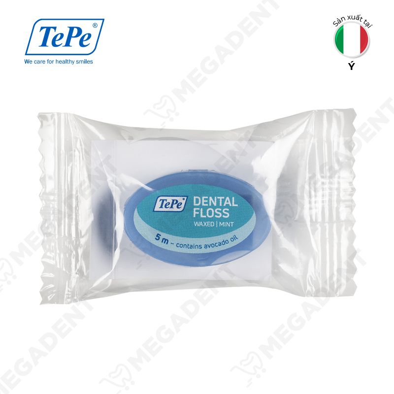 - Chỉ nha khoa của Tepe giúp lấy đi thức ăn thừa, loại bỏ vi khuẩn bám trong kẽ răng ở những vị trí mà bàn chải không thể với tới được một cách hiệu quả, giữ cho răng miệng luôn sạch sẽ với hương bạc hà thơm mát.