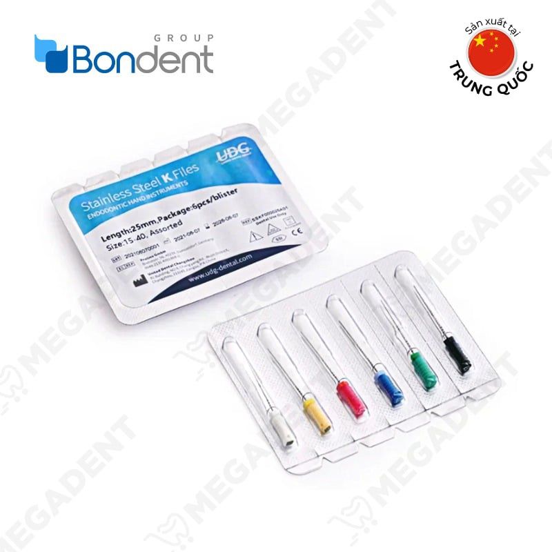 Bondent UDG K-Files là dụng cụ nha khoa chính xác được thiết kế để thực hiện vượt trội trong các thủ thuật nội nha, đặc biệt tập trung vào điều trị tủy. Chức năng chính là tạo điều kiện thuận lợi cho việc làm sạch và tạo hình ống tủy một cách triệt để. Thiết kế mảnh mai nhưng chắc chắn của chúng cho phép nha sĩ tiếp cận toàn bộ chiều dài của ống tủy, đảm bảo loại bỏ hiệu quả các mảnh vụn và tạo hình tỉ mỉ. Chúng có sẵn với nhiều kích cỡ và độ thuôn khác nhau để đáp ứng các giải phẫu răng đa dạng và các yêu cầu lâm sàng, mang đến cho nha sĩ sự linh hoạt và chính xác. Chất lượng, độ chính xác và tính linh hoạt của chúng khiến chúng trở thành một sản phẩm chủ lực trong lĩnh vực nội nha.