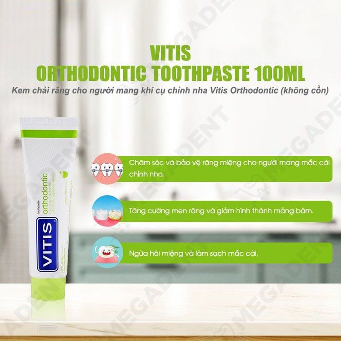 - Vitis Orthodontic là kem đánh răng sử dụng hàng ngày cho người mang khí cụ chỉnh nha.