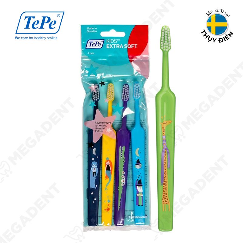 - Bàn chải đánh răng Tepe Kid Extra Soft được sản xuất tại Thụy Điển và được nha sĩ khuyên dùng.