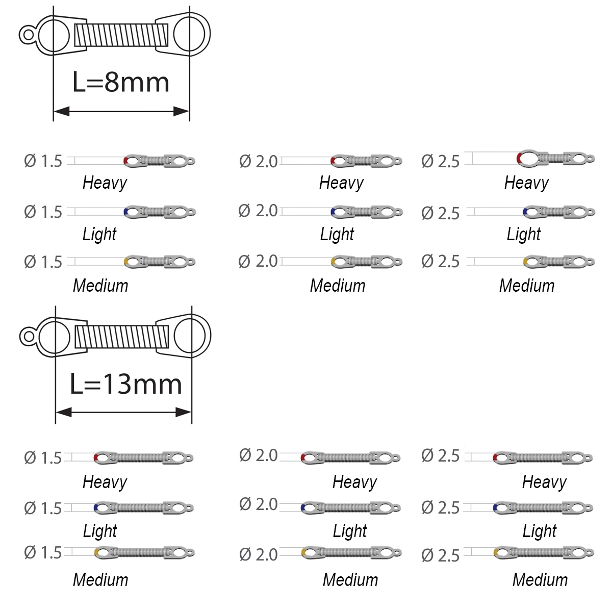 Lò xo đóng khoảng Dentos Coil spring không có khe giữa các vòng xoắn. Không thể nén loại lò xo này và do đó có thể sử dụng để "duy trì khoảng ".