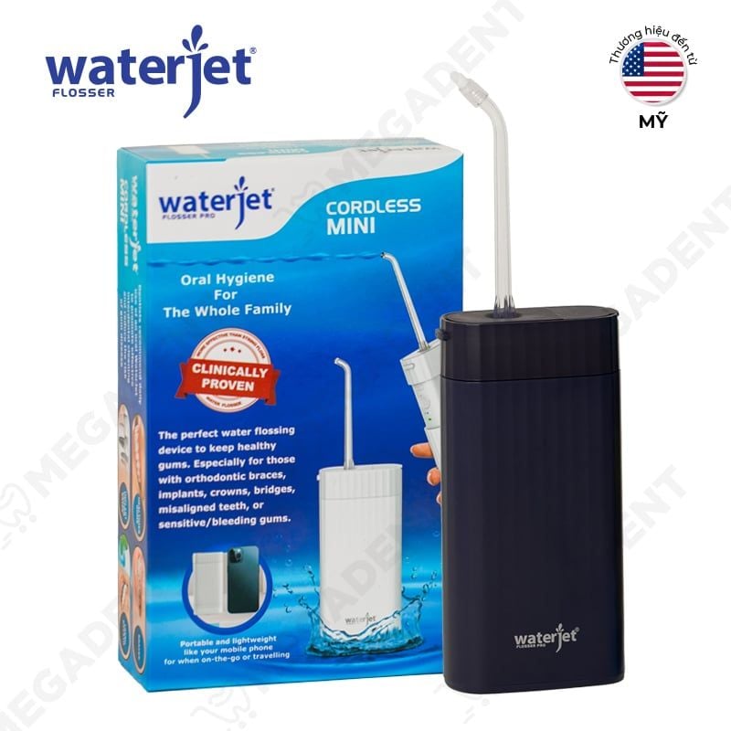 - Máy tăm nước không dây Waterjet Cordless Mini là dòng máy tăm nước cá nhân không dây nhỏ gọn – mạnh mẽ – thông minh, giúp làm sạch sâu các mảng bám, vụn thức ăn ở kẽ răng mà bàn chải thường không chạm tới.