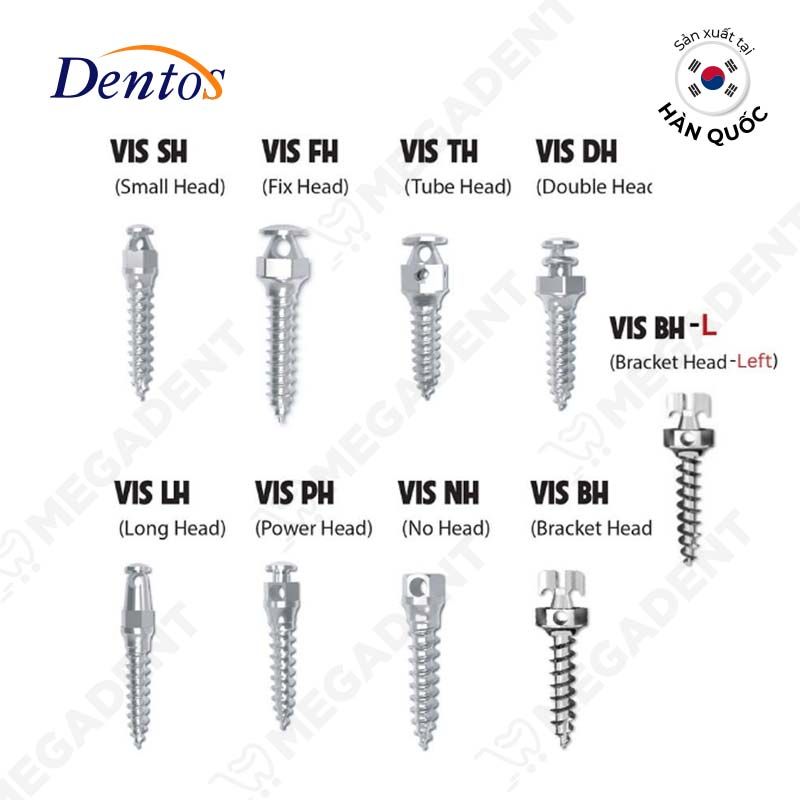 Minivis của hãng Dentos (Hàn Quốc) với chất liệu hợp kim Titanium giúp dễ dàng tích hợp với xương bệnh nhân, đầu thiết kế nhỏ và cấu tạo theo hình xoắn ốc hỗ trợ BS dễ thao tác, thoải mái và thẩm mỹ cho BN trong quá trình điều trị.