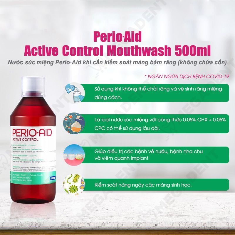 - PERIO-AID® là sản phẩm chăm sóc răng miệng được chỉ định để duy trì sức khỏe nha chu. Dòng sản phẩm có một công thức cụ thể kết hợp hai thành phần hoạt tính, chlorhexidine (CHX) và cetylpyridinium chloride (CPC), hoạt động đồng thời để đảm bảo kiểm soát tối đa mảng bám răng.